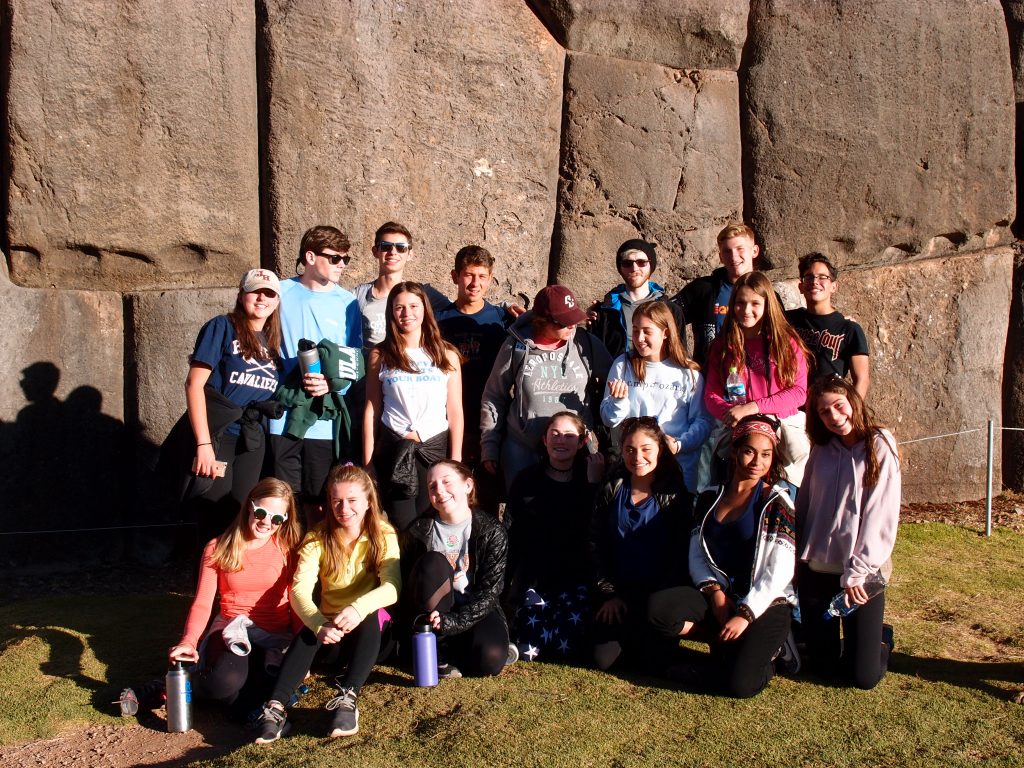 The entire group at Sacsayhuaman Inca ruins in Cusco, Peru